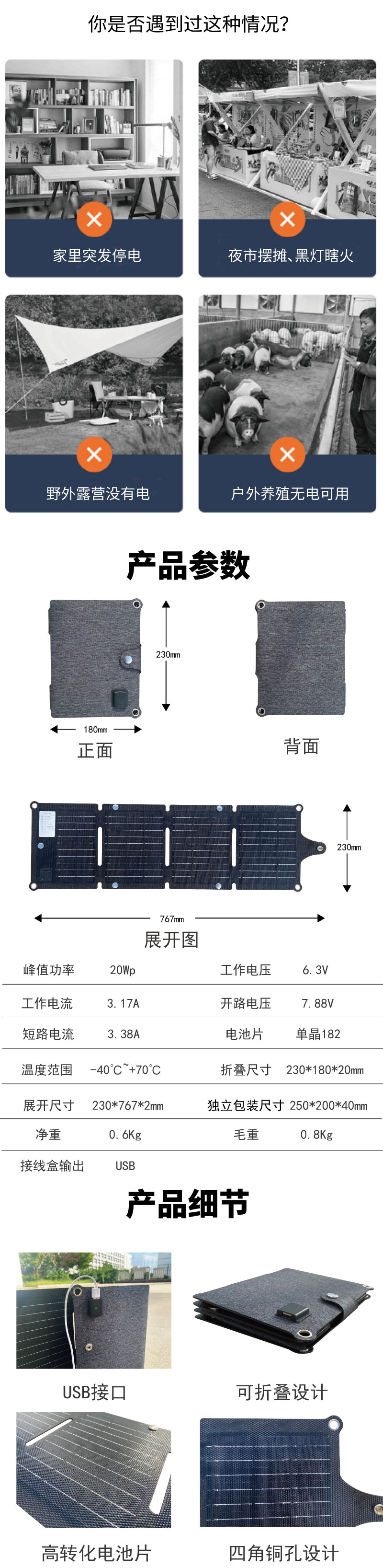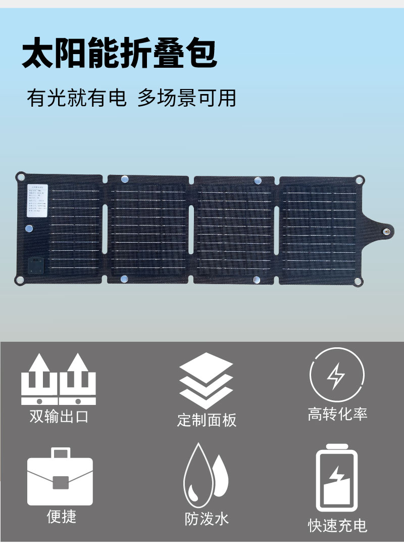 新品戶外一體層壓20W太陽能板折疊充電包便攜手提充電板伴手禮USB